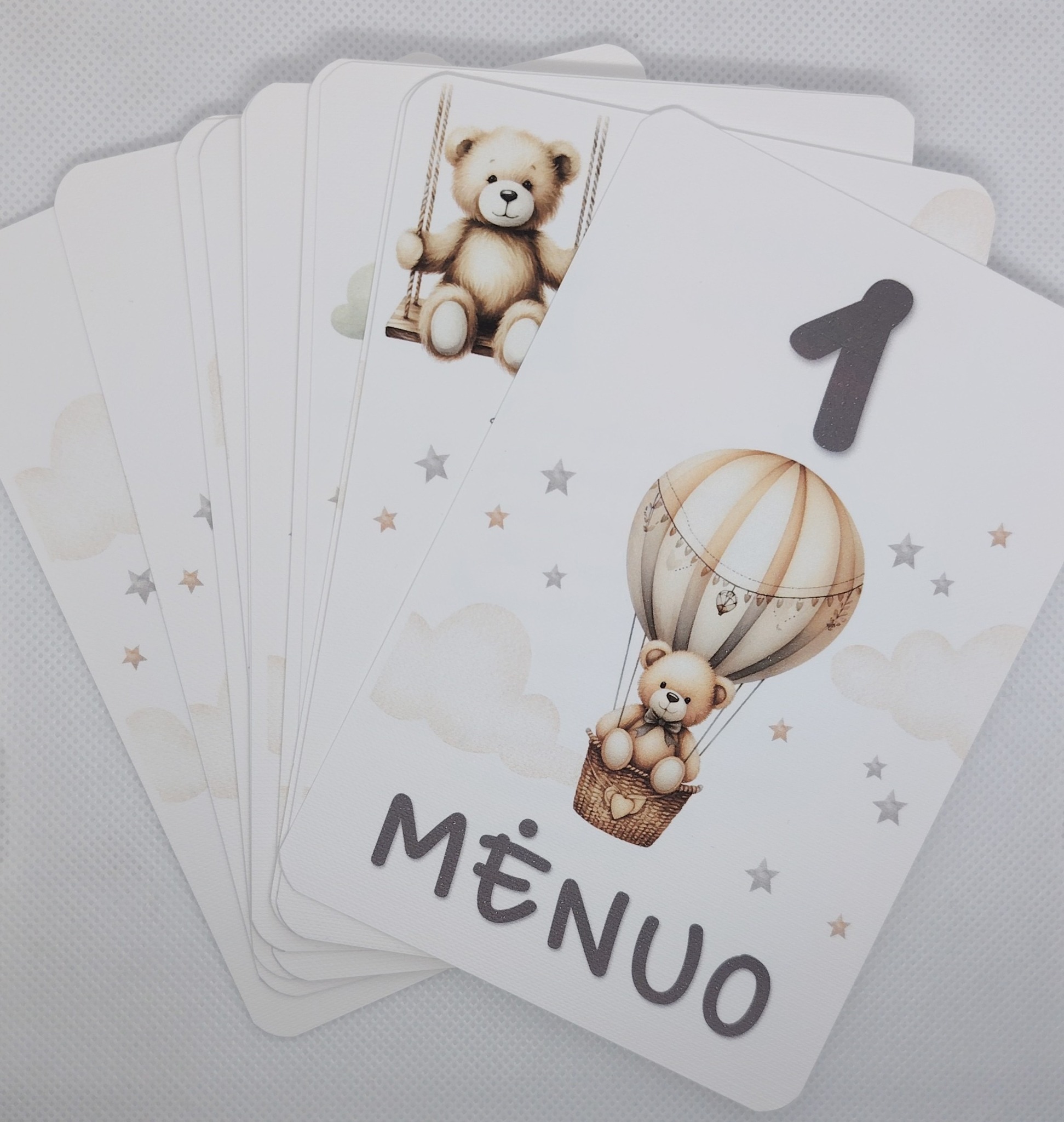 Mėnesių kortelės – tai puikus būdas kūrybiškai ir estetiškai įamžinti kiekvieną kūdikio augimo etapą nuo pirmųjų dienų.