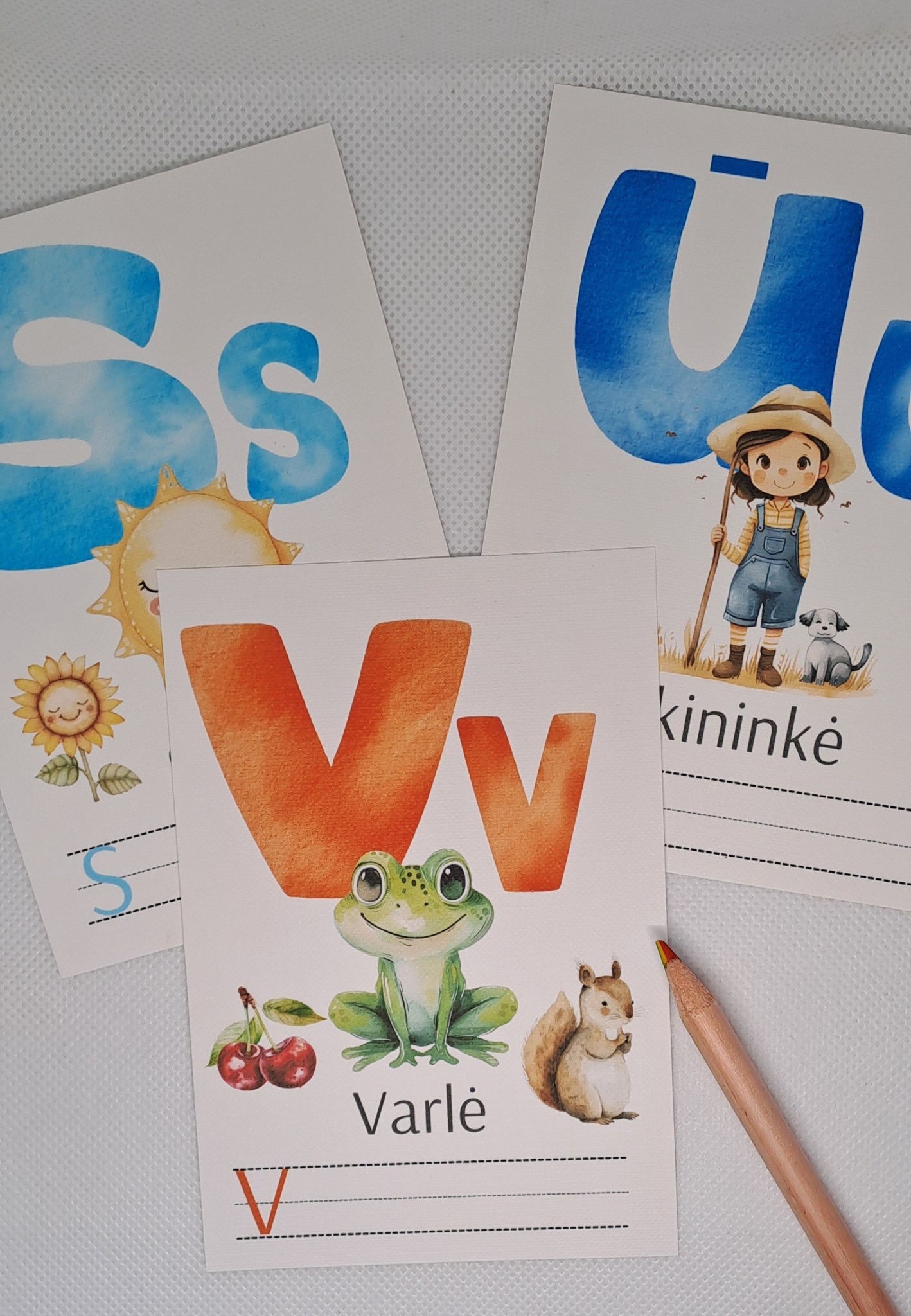 Smagios ir ryškios mokomosios kortelės, padedančios vaikams lengvai ir įdomiai išmokti lietuviškas raides!