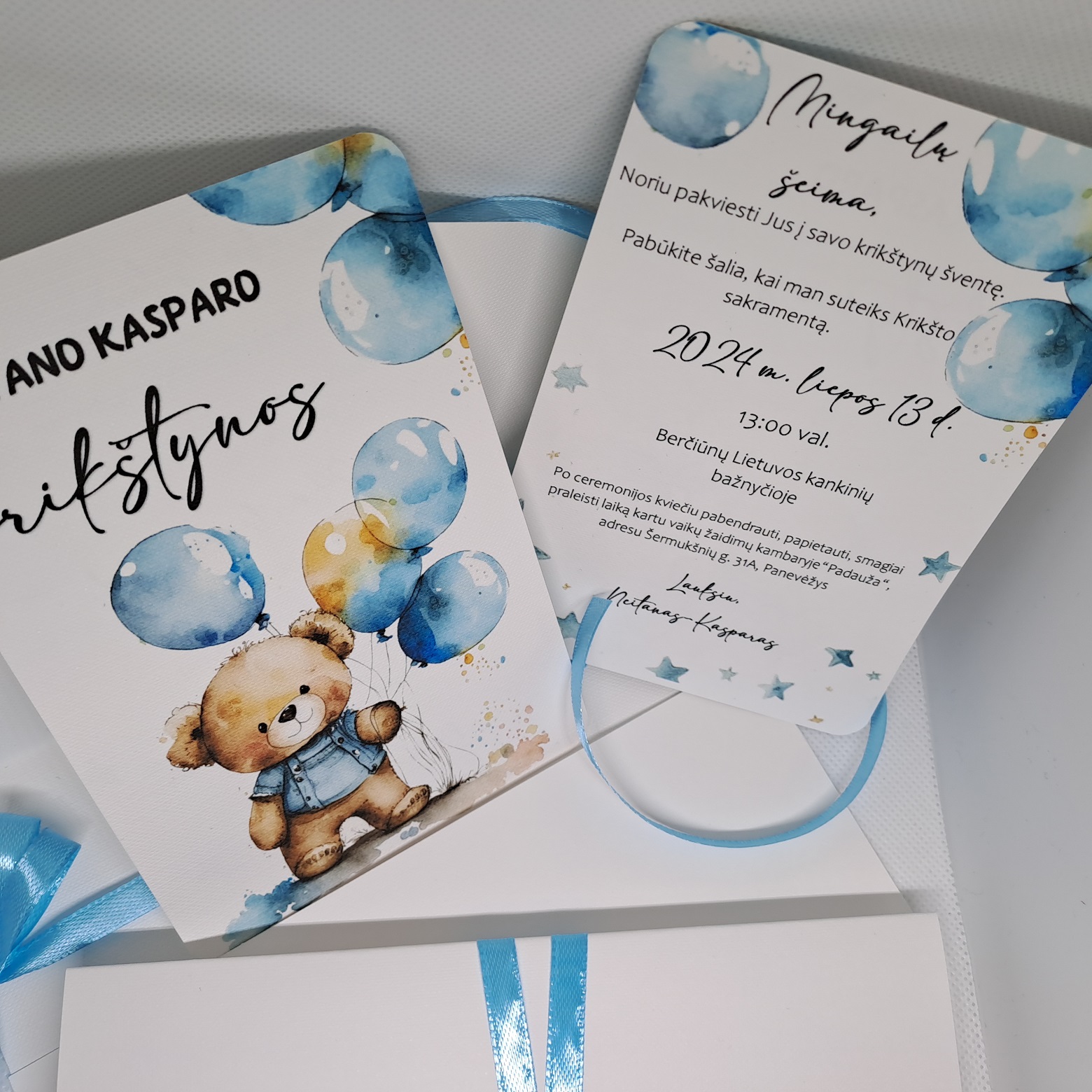 Krikštynų kvietimas MĖLYNAS MEŠKIUKAS
