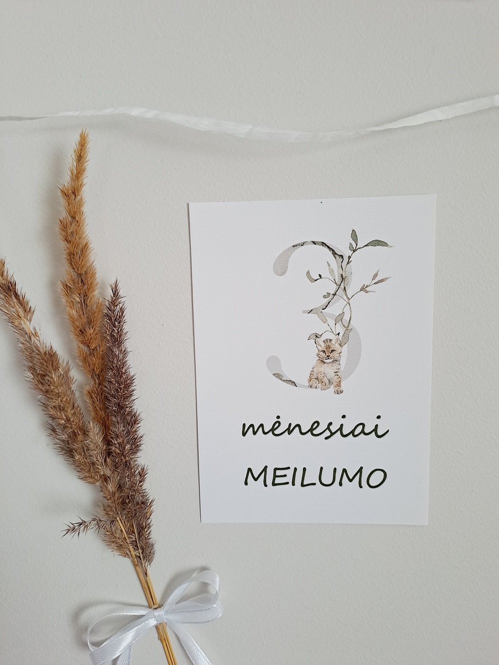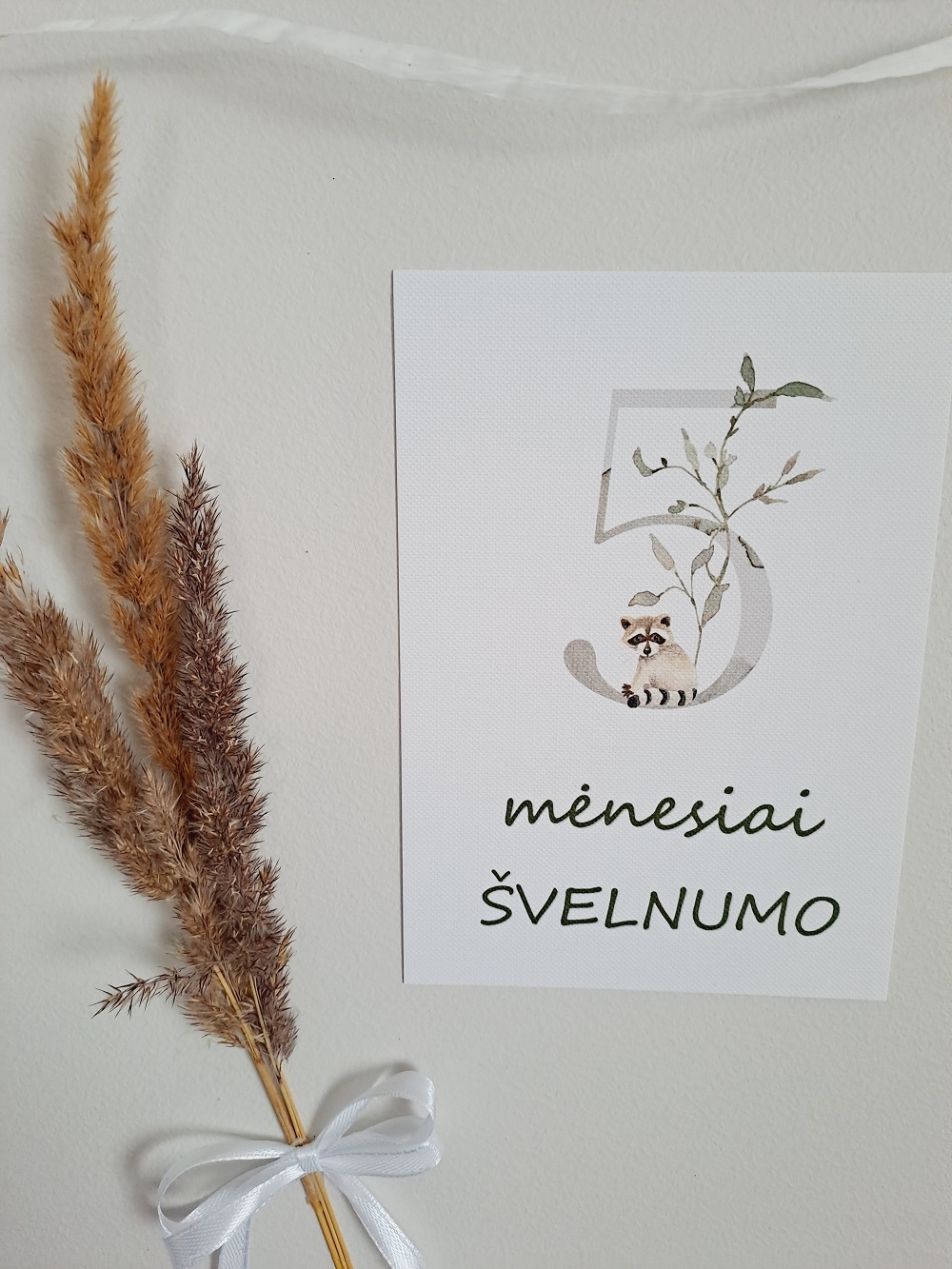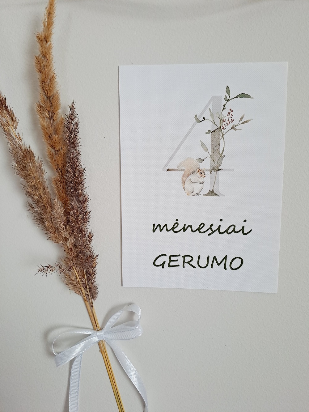 Kūdikio mėnesių kortelės berniukams ir mergaitėms